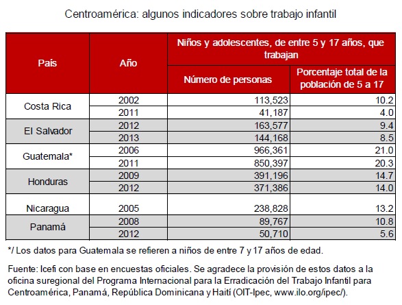 No. 16 - Época II. El trabajo infantil constituye una de las más notorias manifestaciones de la exclusión social y económica que padecen alrededor de 1.7 millones de niñas y niños centroamericanos. Las Convenciones 138 (1973) y 182 (1999) de la Organización Internacional del Trabajo establecen que la edad mínima de admisión a cualquier trabajo o empleo no debe ser inferior a la edad de completar la educación obligatoria, y en ningún caso menor de 15 años.