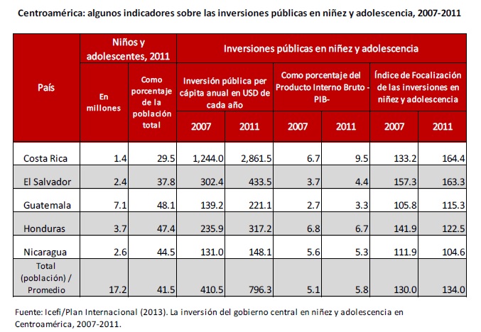 Aún cuando las estadísticas registran mejoras en la disminución del trabajo infantil es urgente acelerar la erradicación del trabajo infantil. Las sociedades centroamericanas, con especial énfasis en sus gobiernos y sus sectores empresariales, deberán comprometerse a erradicarlo disponiendo de mayores recursos (humanos, materiales y financieros) para el aumento de la cobertura y calidad de los sistemas públicos de educación y salud, la existencia de un programa efectivo y transparente de transferencias condicionadas dirigido a la niñez en situación de pobreza, la puesta en marcha de programas de transformación productiva y generación de empleo para adultos, y finalmente, fortalecer a las instituciones que supervisan el cumplimiento de las normas legales que persiguen el castigo y la erradicación del trabajo infantil.