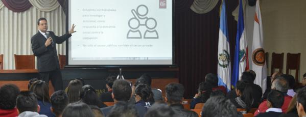 El Centro Universitario de Occidente –CUNOC-, en la ciudad de Quetzaltenango, de nueva cuenta organizó la presentación de una investigación del Icefi; esta vez del libro «La corrupción: sus caminos e impacto en la sociedad, y una agenda para enfrentarla en el Triángulo Norte Centroamericano». La actividad se realizó el 10 de noviembre, y reunió a decenas de estudiantes y docentes, así como representantes de organizaciones sociales con trabajo en el occidente del país.