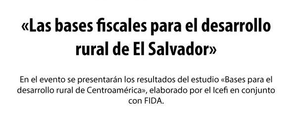 El foro «Las bases fiscales para el desarrollo rural de El Salvador» se realizará el próximo 17 de mayo, en el Hotel Sheraton Presidente, ciudad de San Salvador. El foro se realizará en conjunto con el Grupo de Diálogo Rural (GDR) y el Programa Regional de Investigación sobre Desarrollo y Medio Ambiente (PRISMA).