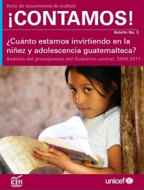 El presente boletín se enfoca en el análisis del presupuesto público del Gobierno central para el período 2009 - 2011. Los resultados ponen de manifiesto que por cada quetzal que se espera gastar en 2011 en el presupuesto público, aproximadamente 19 centavos serán destinados al gasto directo en niñez y adolescencia. Ello implica que el Estado invertirá alrededor de Q1,472.00 anuales (184 US$, aproximadamente), que deberán servir, en teoría, para atender las necesidades de educación, nutrición, salud, saneamiento y protección social de cada uno de los 7,066,690 niñas, niños y adolescentes de entre 0 y 17 años de edad que viven en Guatemala.