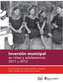 Esta investigación pretende determinar el monto y los rubros de inversión directa e indirecta en niñez y adolescencia en el nivel municipal, en los municipios de Joyabaj y Pachalum, del departamento de Quiché; y Olopa, Chiquimula, Camotán, San Juan Ermita y Jocotán, del departamento de Chiquimula. El período que abarca el análisis son los años 2011 y 2012. En la primera parte se elabora un marco contextual acerca de la situación socioeconómica de la población de estos municipios, con énfasis en la niñez y la adolescencia. A continuación, en la segunda parte, se hace una descripción de la composición del presupuesto municipal para luego, en la tercera sección, efectuar un repaso detallado por la metodología utilizada para la medición de la inversión en niñez y adolescencia. En la cuarta parte se presentan los resultados de la investigación y el análisis de algunos indicadores que evidencian los montos y rubros de inversión que los gobiernos municipales han destinado a la niñez y la adolescencia. Finalmente, en la quinta sección, se proponen algunas estrategias que, desde la sociedad civil, pueden tomarse para incidir en que se focalicen muchos más recursos para la inversión en niñez y adolescencia, pero también que estos se ejecuten de forma mucho más eficiente.